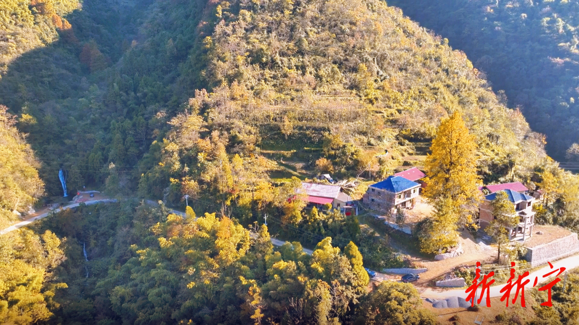 沿著小徑前行,幾座白墻黛瓦的古樸民居點綴在山坳間,屋前的銀杏樹早已換上了金黃盛裝,葉片簌簌飄落,與老屋的滄桑相映成趣,鋪就出一片暖黃的山居景致。